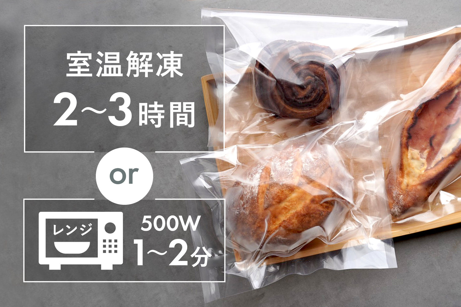 お届けするパンは全て真空包装。衛生的で風味を損なわないだけでなく、冷凍庫内の匂いがパンに移らないので安心して保存いただけます。