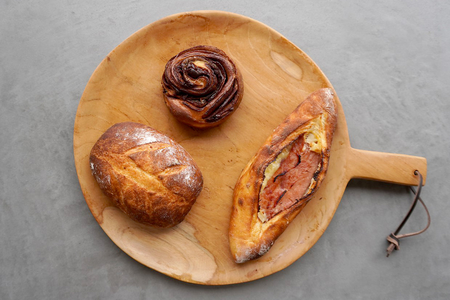「国産小麦」「自家製酵母」「ミネラル水」を使用。低温長時間発酵により小麦の甘みをしっかり引き出し、中はしっとり柔らかい状態を楽しめます。